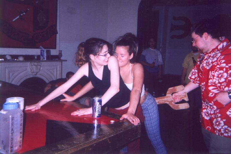 Sorority paddling pictures in which it seems a real paddling took place, or is about to take place. Some pictures are included because they are part of a series in which a paddling took place.