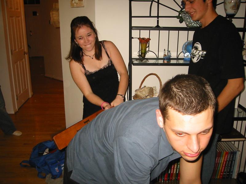Fraternity boys bend over for a good paddling from sorority girls.