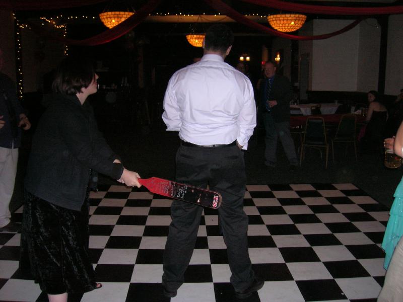 Fraternity boys paddled by sorority girls.
