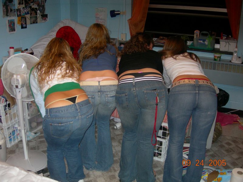 It seems it is slowly fading as a fashion trend and I will sure miss it when it is gone, the visible thong. To me when a woman displays her panties as part of her outfit she is saying two things, “look at my lovely bottom”, and “I am a bit naughty, a spanking may be needed”. Click on the “MORE” link to look at a small gallery dedicated to multiple young ladies showing off their panties and assuming the position, now where did I leave my school paddle…
